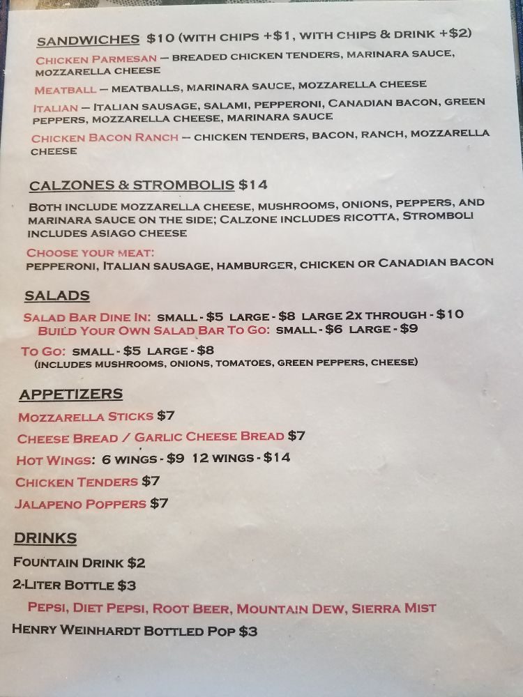 Stromboli includes asiago cheese, mozzarella, mushrooms, red onions, green peppers, and your choice of meat
